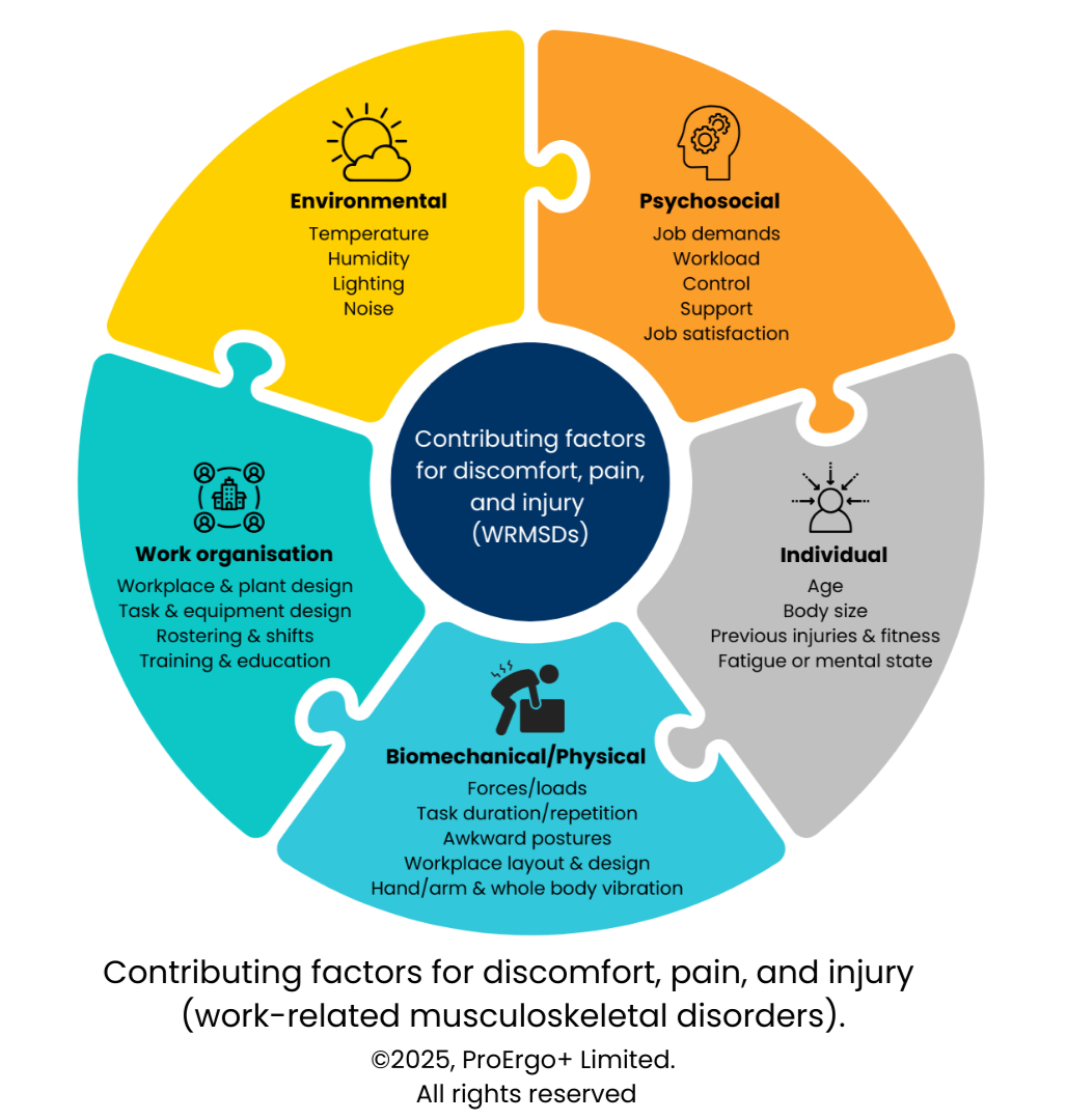 If your team is feeling the heat and you want to look deeper at your musculoskeletal risk management systems, ProErgo+ is here to help. We can support you to move from reactive to proactive, designing work that keeps your people healthy and safe and your business moving forward.