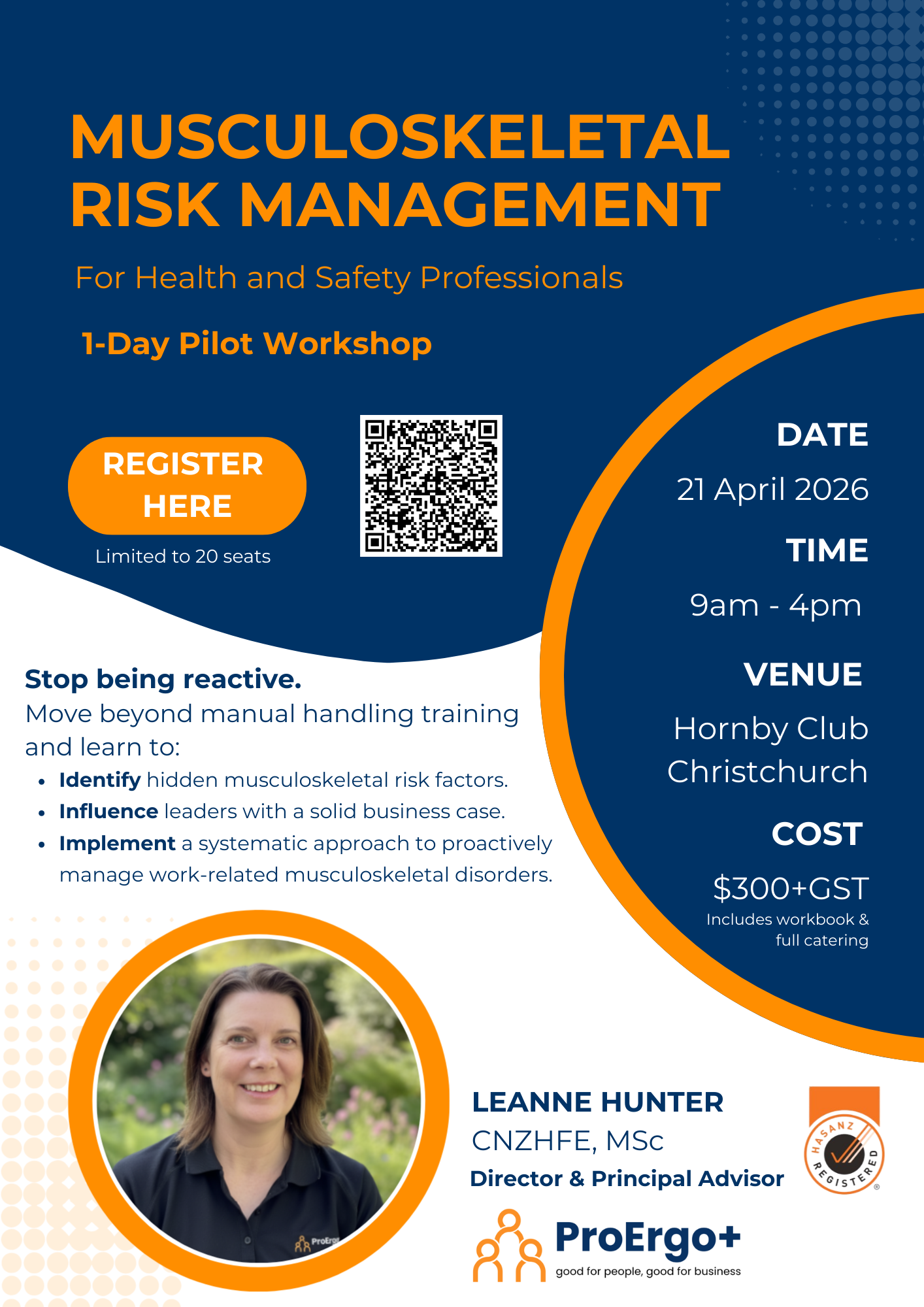 To get the most out of the day, we encourage you to have a specific work-related musculoskeletal issue in mind. This allows you to apply the risk management approach to a real challenge you are facing right now, ensuring you leave with a draft plan you can implement immediately.